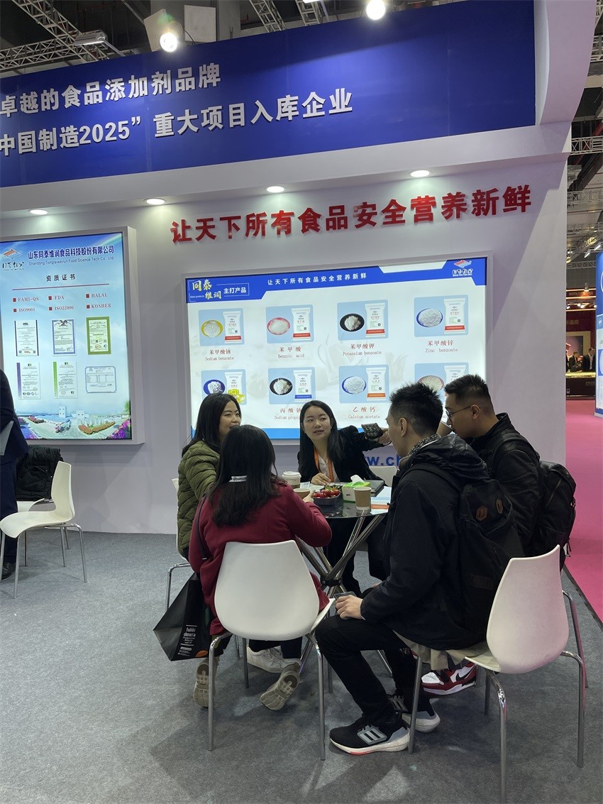 FIC盛會開展首日, 展廳內人頭攢動、十分熱鬧,同泰維潤攜主打產品苯甲酸鈉、苯甲酸、丙酸鈣、丙酸鈉、乙酸鈣、乙酸鈉等多款產品亮相此次展會,眾多新老客戶及國外友人到我公司展區(qū)洽談咨詢。對客戶提出的產品應用與問題進行全方位的解答,專業(yè)的團隊為客戶提供更加專業(yè)的解決方案!